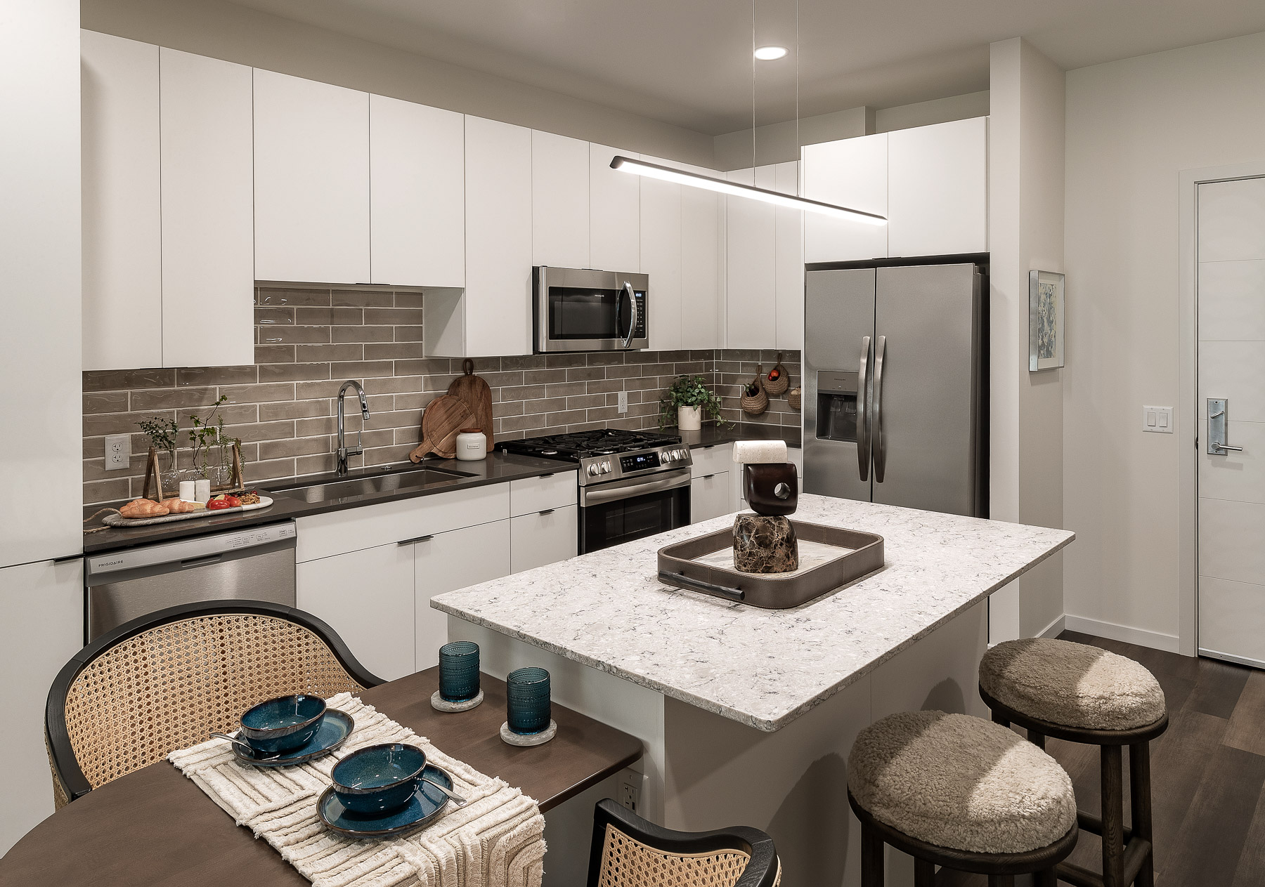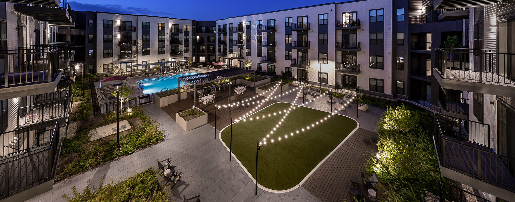 Imagine life at our apartments for rent in Aurora, IL! Welcome to a luxury apartment community where every detail is crafted for comfort, connection, and style. Browse our Lucca Fox Valley photos below and see why our apartment homes are the perfect place to call home. With two finish choices featuring soft-close cabinetry and countertops, plus a private patio or balcony in every home, your living space is designed for style and comfort. Our community offers private courtyards and green spaces, a state-of-the-art fitness center, and ample co-working spaces. View our modern amenities, explore our studio, 1-, and 2-bedroom floor plans, and schedule a tour today! From high-end, spacious apartments to vibrant community amenities, Lucca offers the perfect blend of modern living and timeless elegance.